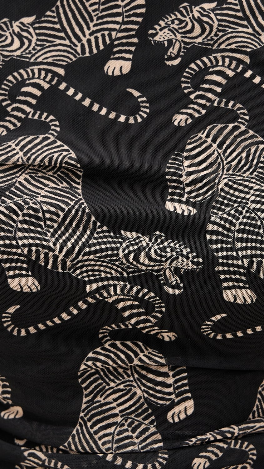Farm Rio Striped Tiger Black Tulle Blouse