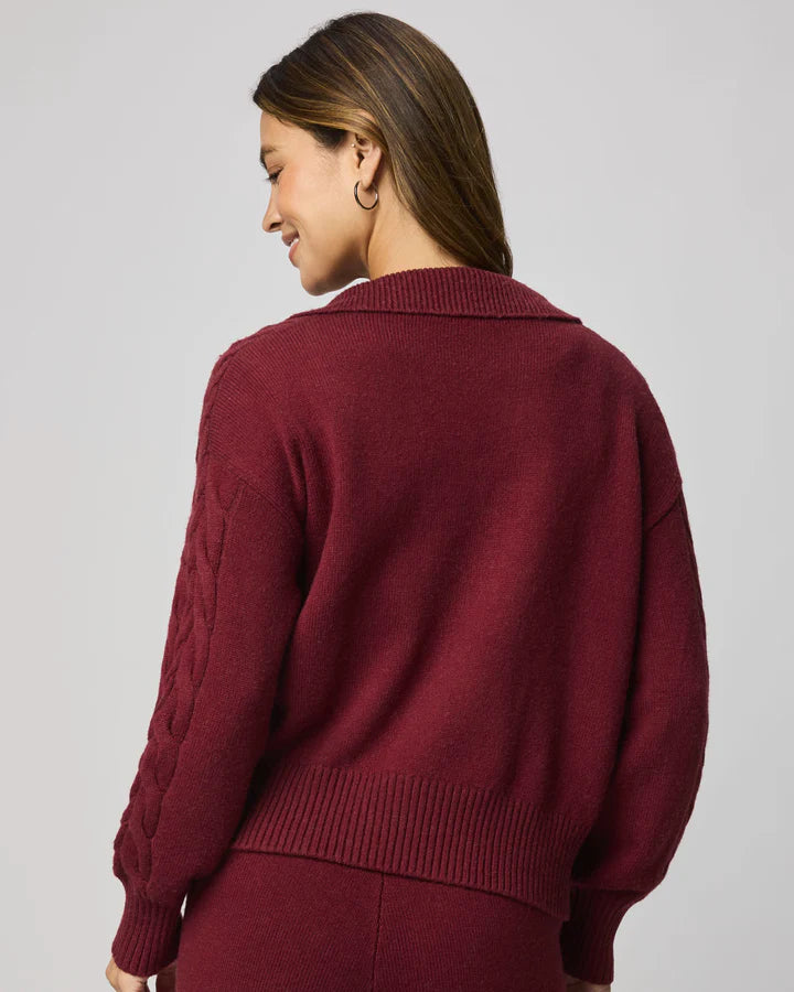 Get there in comfort with the Jet Set Polo Sweater. With its timeless cable knit detailing and ultra-soft feel, this sweater was designed to keep you cozy from take-off to arrival to beyond-all while looking good.
